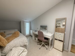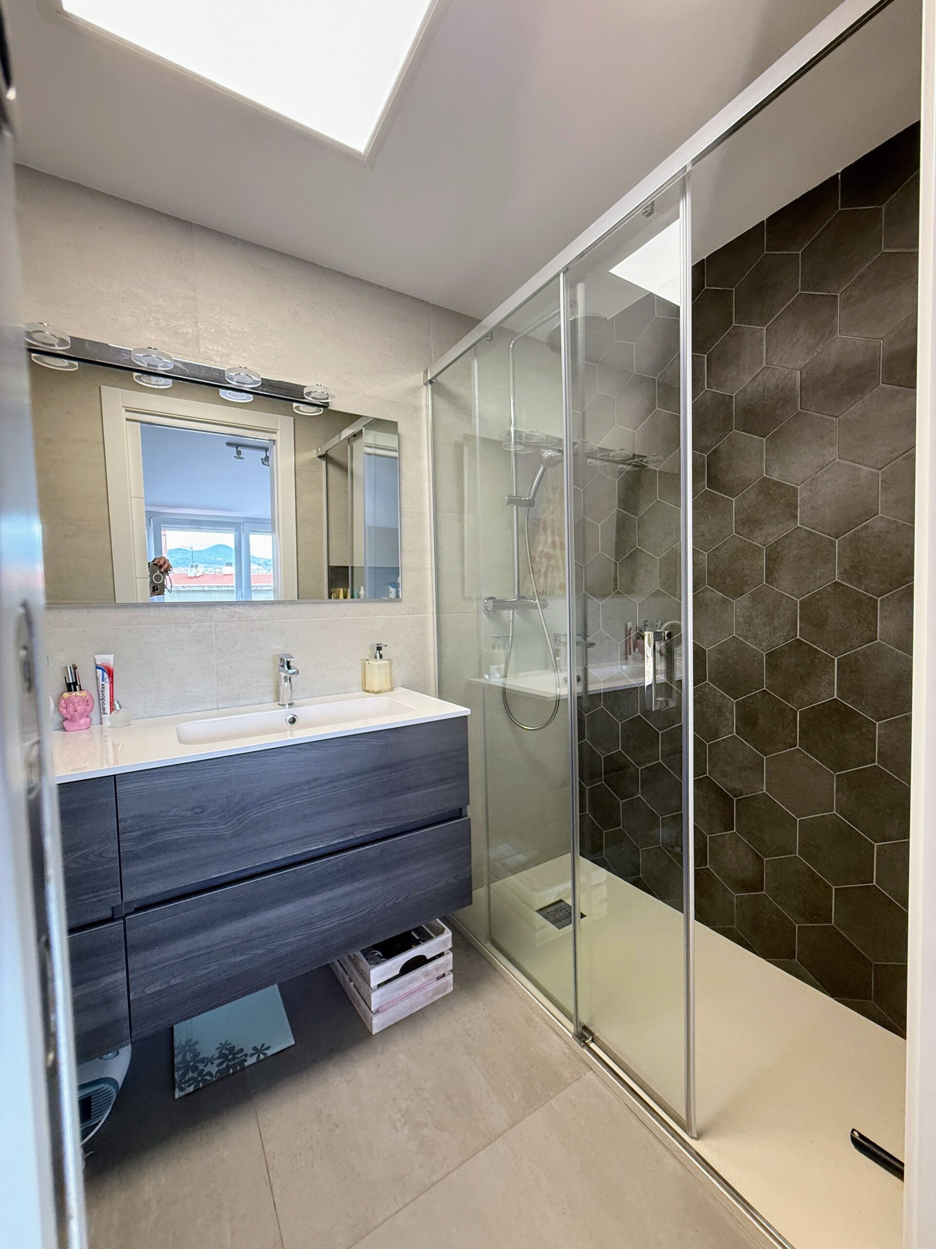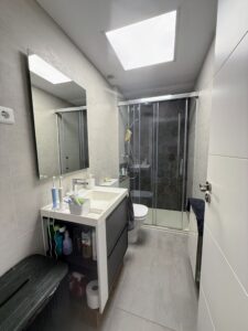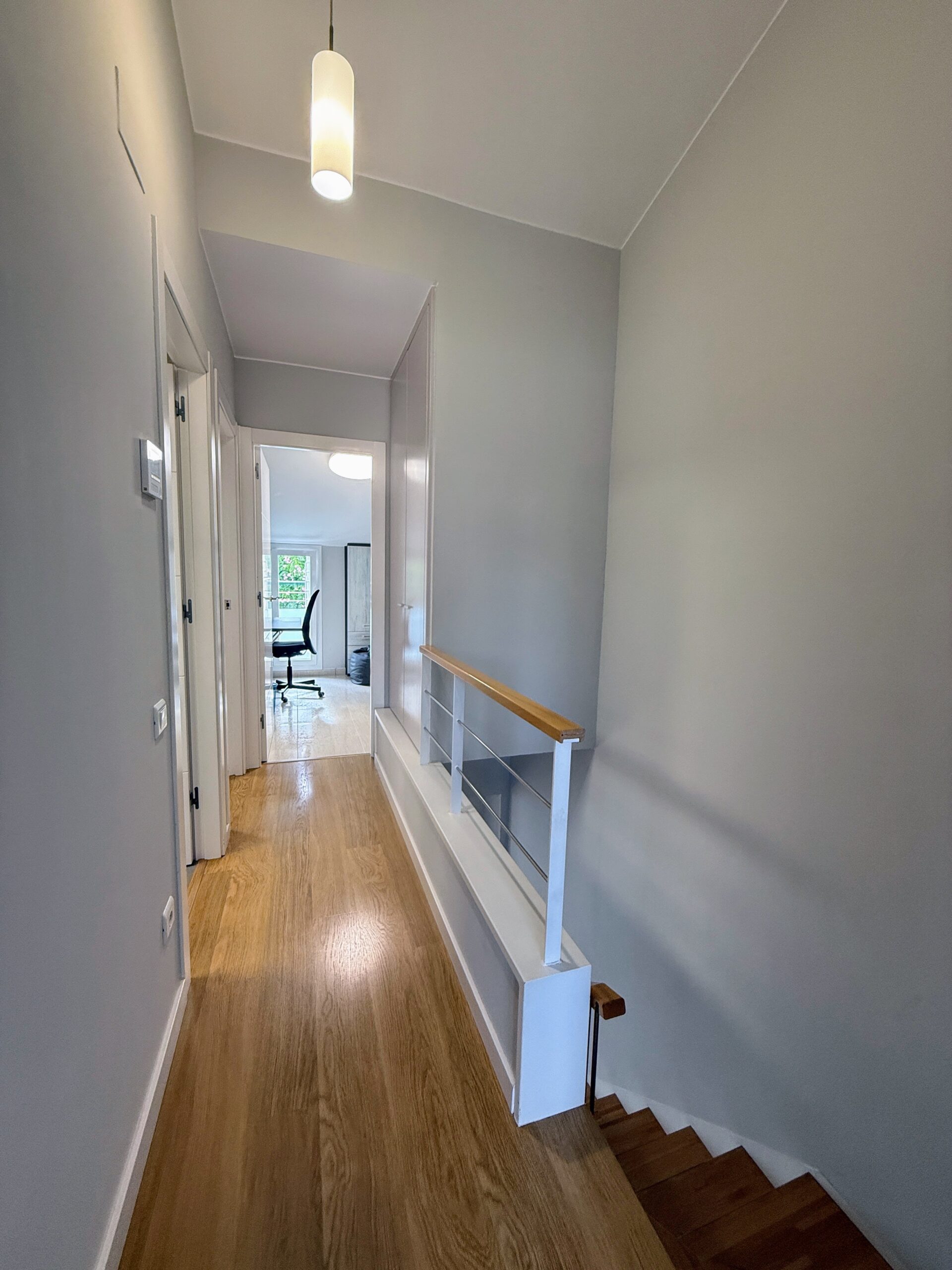La planta superior dispone de tres dormitorios, dos dobles y uno individual, además de dos baños completos con plato de ducha y un elegante diseño contemporáneo.