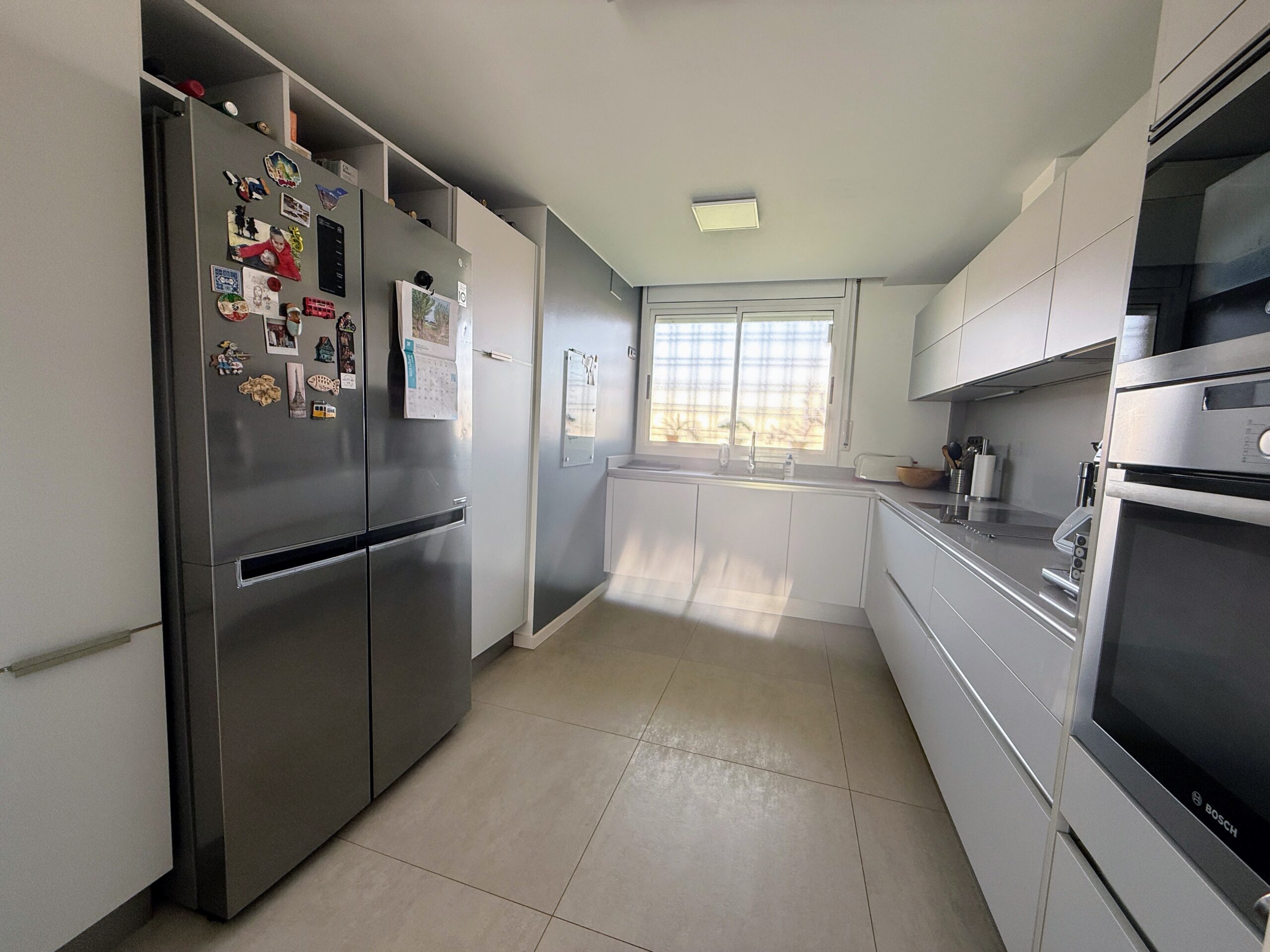 En la planta principal encontramos un amplio salón-comedor de 23 m² con salida directa a un balcón con vistas al jardín y la piscina comunitaria, una cocina independiente totalmente equipada de 10 m², un recibidor y un aseo de cortesía.