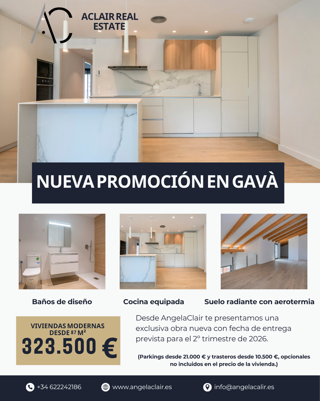 Vive la experiencia AngelaClair en tu nuevo hogar. Si buscas un piso moderno, eficiente y con la máxima calidad, esta promoción de obra nueva en Av. Mas Sellares, 5 (Gavà) es para ti.